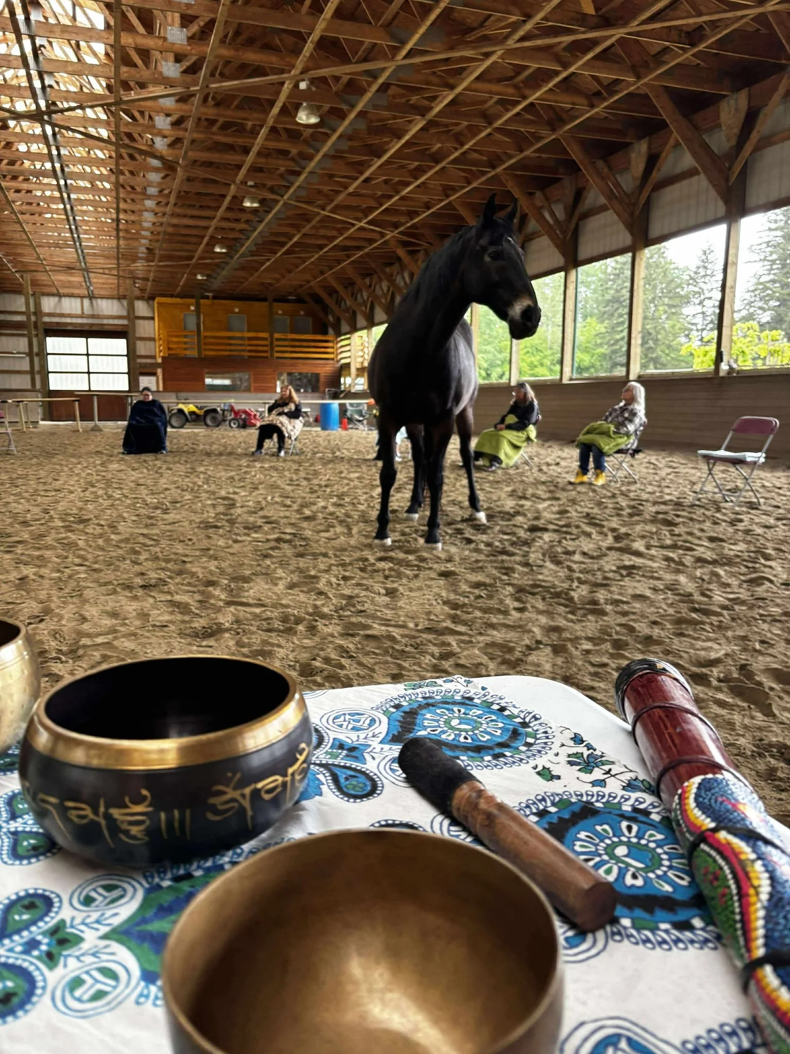We are home to a diverse network of practitioners, with in-house offerings including Equestrian Coaching, horse training, and horse rehabilitation; Registered Therapeutic Counseling; Facilitated Equine Experiential Learning; Intentional Creativity; and sound healing and other holistic healing services. We also offer half and full board with access to plenty of amenities across our facility (for more information, click here).